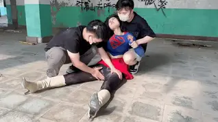 短发女健身爱好者戴上手铐脚镣爬山健身,jk制服和ol装