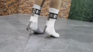 感谢支持! 《乳胶奴婢的硬核重装重虐无氧运动》金属手颈枷、金属束腰带,穿着金属贞操锁,双电击器、内置8贴片+充气塞,呼吸面具连接背带式双负压瓶,脚戴金属镣铐,框架拘束固定负压负重极限运动,电击棒自震锁射.....